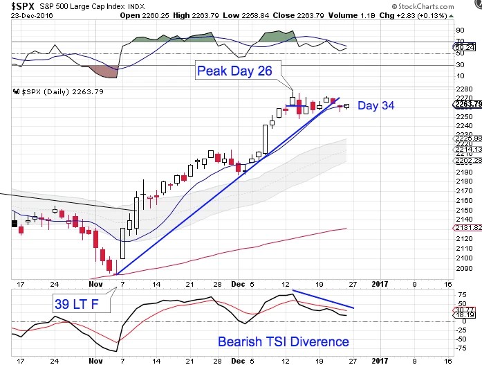 Friday was day 34 for the daily equity cycle, placing stocks in their timing band to seek a daily cycle low. At 34 days, stocks could trend lower for the next 5 to 10 days. Stocks are in a daily uptrend & will remain so unless they close below the lower daily cycle band.