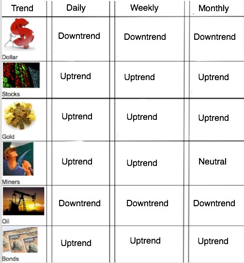 The Weekend Report discusses Dollar, Stocks, Gold, Miners, Oil, & Bonds in terms of daily, weekly and yearly cycles.