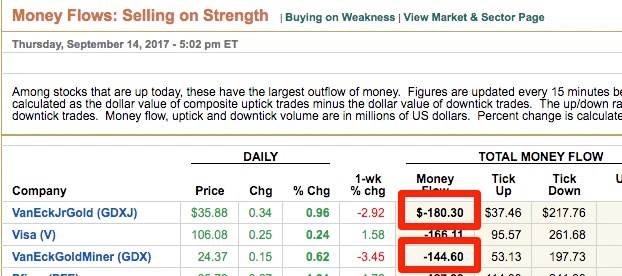 Both the Junior Miners and the Miners printed large Selling on Strength numbers that aligns with a rallying dollar which foreshadows more downside for the Miners.