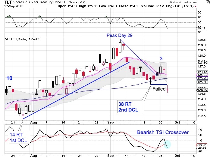 On September 19 we discussed that bonds were beginning to become bearish. On Wednesday, bonds confirmed a bearish cycle.
