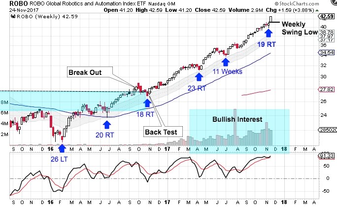 3) The bearish break down was followed by a back test of that break down, which exhausted bears. Then robotics began to rally.