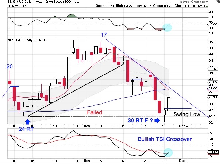 The dollar formed a swing low on Tuesday.