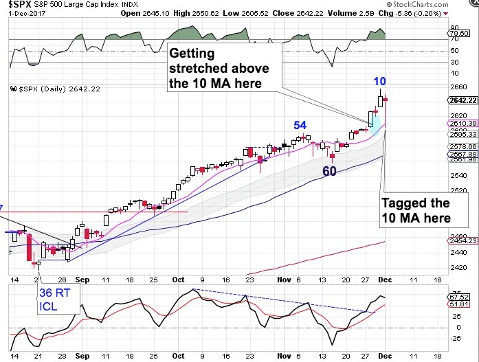 Friday’s volatility caused stocks to back test the 10 day MA.