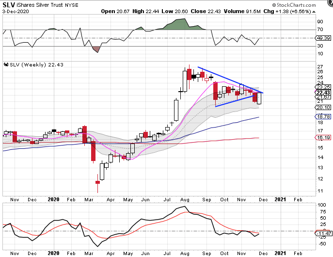 Silver is in the process of forming a bullish weekly engulfing candle. This will ease the parameters for forming a weekly swing low. Once silver forms a swing low and breaks above the declining weekly trend line it will begin a new intermediate cycle. Gold already broke out to new highs during this last intermediate cycle. It’s time for silver to follow suit.