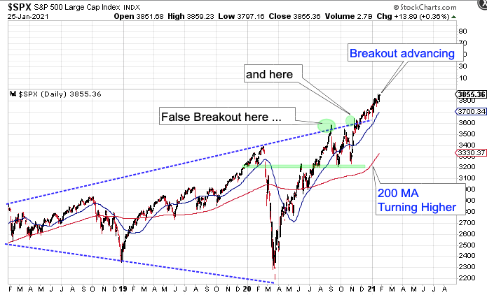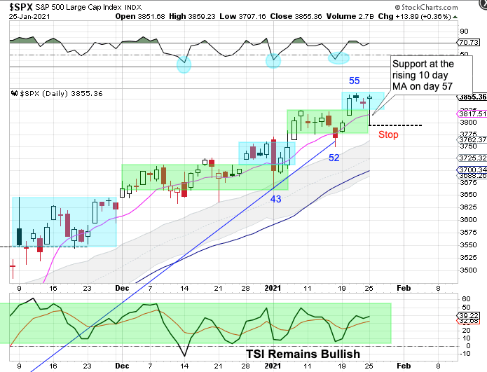 Stocks have been stair stepping higher and then consolidating in order to allow the 10 day MA to catch up to price. The backtest of the 10 day MA allows us to raise our stops.