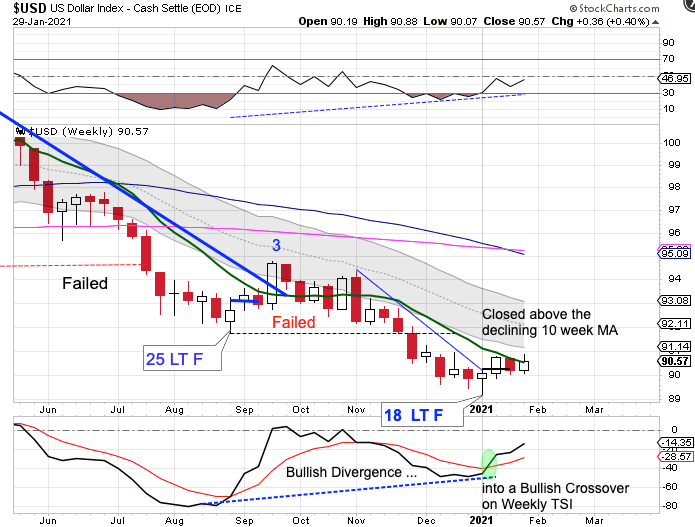Back on January 11th we discussed how the dollar closed above the 10 day MA to signal a new daily cycle. That was the first domino.