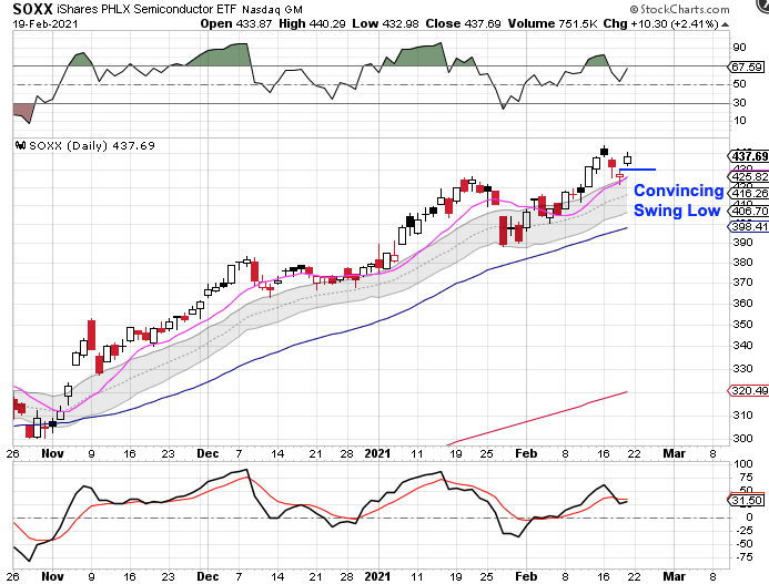 The market leading semi conductors formed a convincing swing low on Friday, gaining 2.41% on the day.