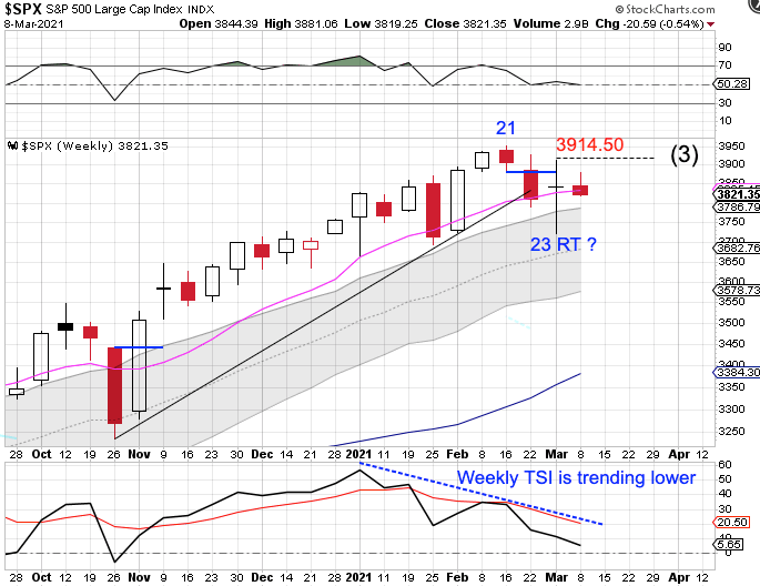 Third –Stocks need to form a weekly swing low. Week 23 placed stocks in their timing band for an intermediate cycle low. A break above 3914.50 will form a weekly swing low. Stocks are in a strong weekly uptrend. If a weekly swing low forms then stocks will remain in their weekly uptrend and trigger a weekly cycle band buy signal.