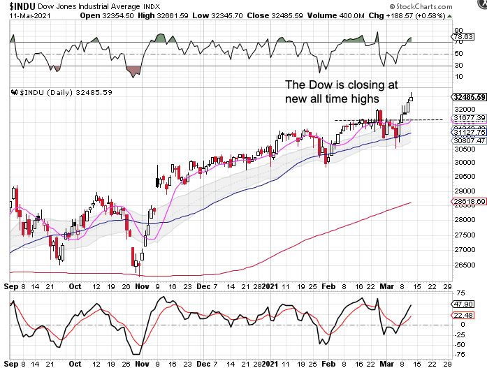 … and the Dow are delivering bullish follow through to their respective breakouts.