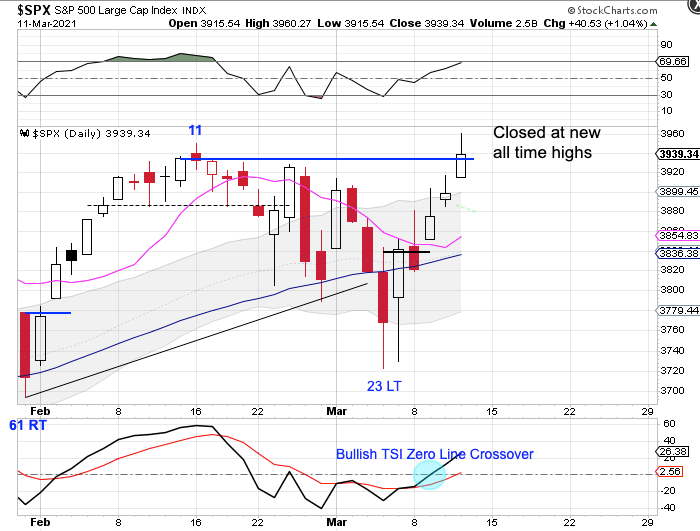 I believe that March 4th was not just a daily cycle low, but an intermediate cycle low as well. (Which is something that I plan to cover in the Weekend Report.) If I am correct that stocks are now in week 1 of a new intermediate cycle, and if this weekly cycle right translates then stocks could be rallying for 15 – 20 weeks before the next intermediate cycle decline.