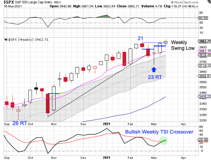 But I am not going to over-think this one. The week 23 low was the timing band for an ICL. In this environment of a new president just passing a truly massive stimulus package on top of the record amount of money printing that has been ongoing – this is probably all we will see for an intermediate cycle decline so we will label week 23 as the ICL.