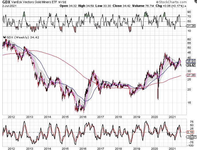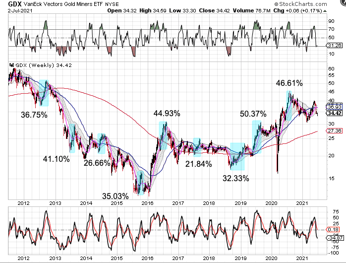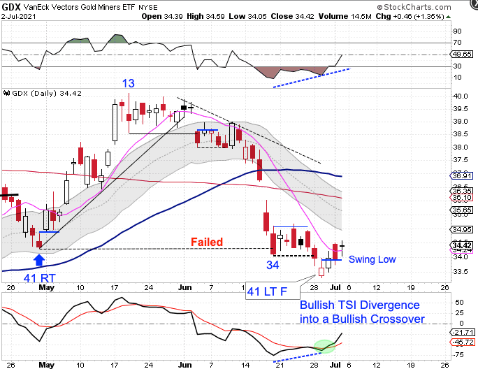 The Miners formed a swing low on Wednesday and closed above the 10 day MA on Friday to signal a new daily cycle.