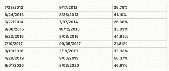 Highlighted are the rallies that began during the summer months (late May through early September).