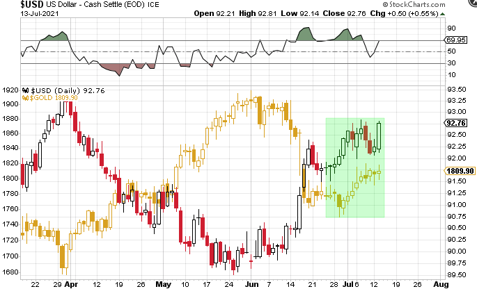 Gold is often seen as a hedge against inflation, which is why gold trends to trade inversely to the dollar. However, as we have seen recently, gold is beginning to rally despite the dollar’ s strength.