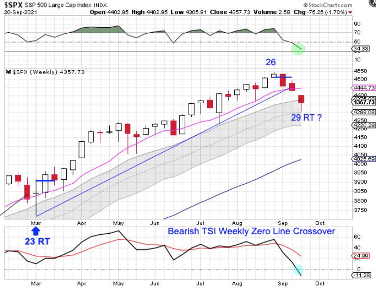 Stocks broke below the previous daily cycle low on Monday. Breaking below the previous daily cycle low forms a failed daily cycle and confirms the intermediate cycle decline.