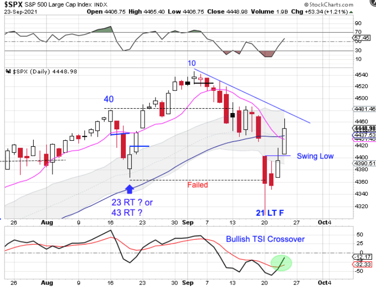 Stocks formed a swing low on Wednesday.