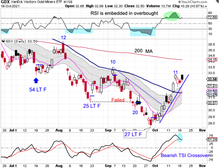 We discussed last week how there is a change in behavior for the Miners. RSI being embedded in overbought along with the Miners closing above the upper daily cycle band are characteristic of a new intermediate cycle.
