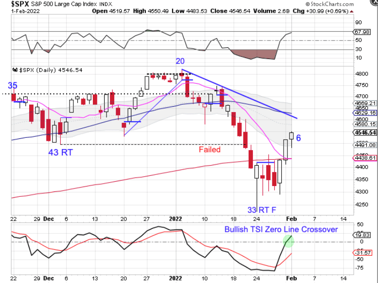 Stocks closed convincingly above the converging 10 day MA and 200 day MA on Monday. They delivered bullish follow through on Tuesday, further confirming that day 33 was the DCL.