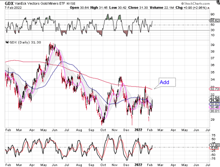 The next obvious area of resistance will be the declining 200 day MA. We will use a close above the 200 day MA as a place to add.
