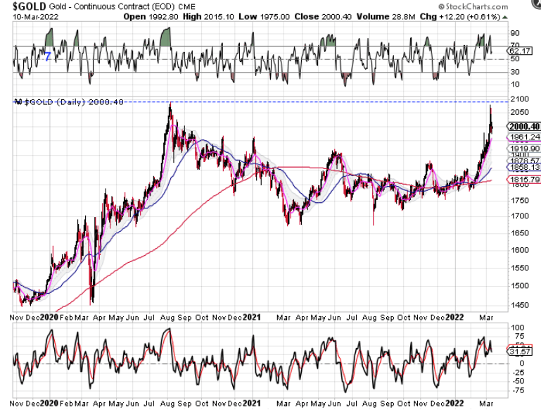 We can see on a longer term view that gold was approaching resistance at its all-time highs and traders are taking profits. This would be a logical place for a daily cycle decline. However, if gold reverses and closes above this resistance level, that would be a buy signal — using the previous all time high as the stop.