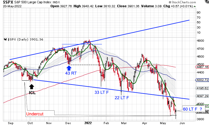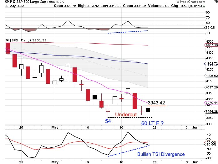 We have seen this before with stocks deep in their timing band for a DCL. The undercut low has good odds of marking both the DCL and ICL. A break above Friday’s high of 3943.42 will form a swing low. Then a close above the 10 day MA will signal the new daily cycle. Stocks are currently in a daily downtrend. Stocks will remain in their daily downtrend unless they close back above the upper daily cycle band.