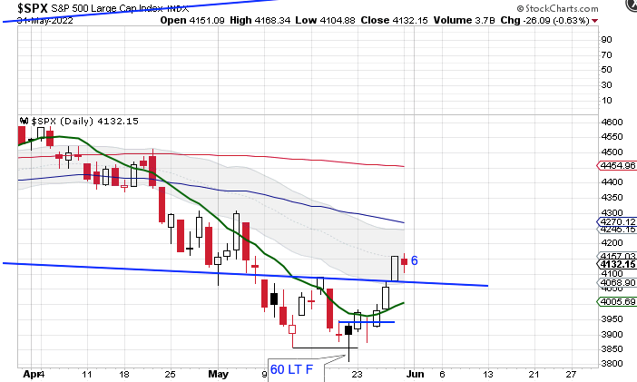The rally out of the day 60 DCL caused stocks to get a bit stretched above the 10 day MA. Ideally we will see stocks crawl along the lower trend line, which will allow the 10 day MA to catch up to price so the rally can resume.