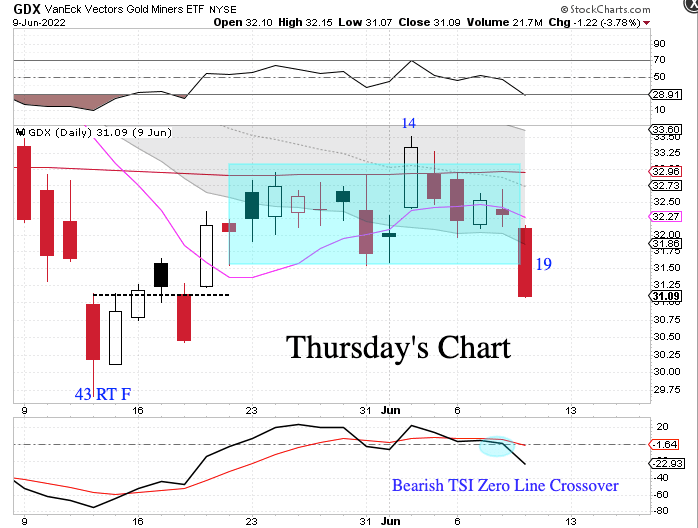 The Miners broke bearishly out of its coiling pattern on Thursday.