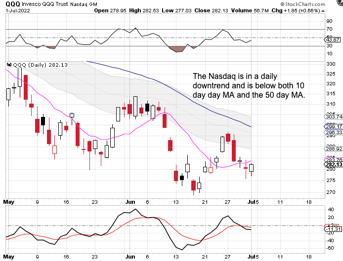 The Nasdaq also had a bullish Friday but remain below both the 10 day MA and the 50 day MA.