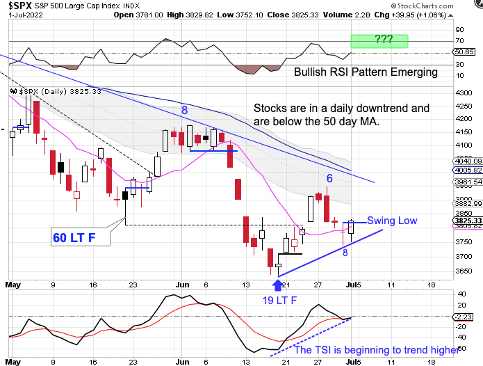 While Friday’s develop is encouraging that day 19 was the DCL, stocks remain below the 50 day MA and is in a daily downtrend.
