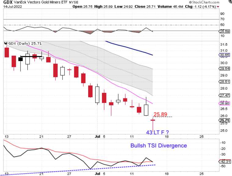 On Wednesday we discussed that if the Miners formed a swing low on Thursday, that would represent a low-risk entry. However the Miners broke lower on Thursday to extend their daily cycle decline.