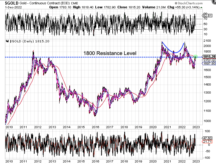 We concluded that once gold breaks above the 1800, gold will be in position for a trending move to be sustained.