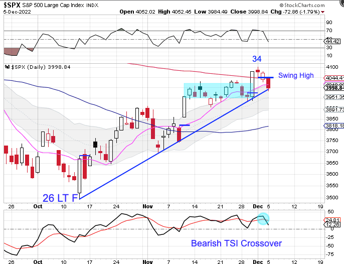 After forming a daily swing high on Friday, stocks delivered another bearish signal on Monday.