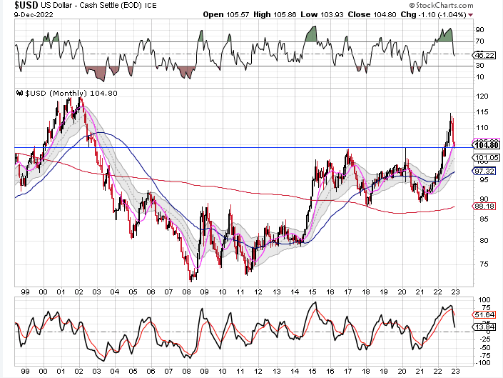The long term chart shows that the dollar has retraced back to a multi decade support/resistance level.