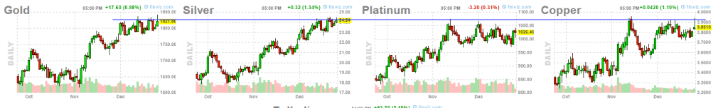 Gold, silver, platinum and copper all seem to have a lid on them, as well. What may be keeping a lid on them is the pending rally on the dollar.