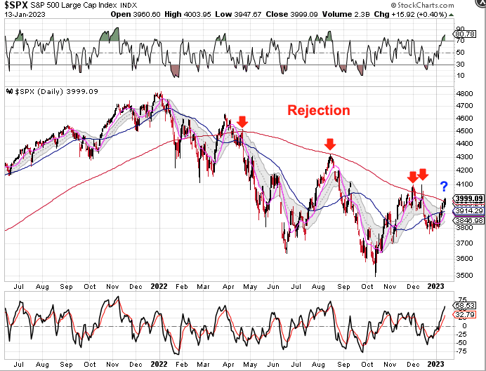 Stocks have consistently been rejected by the 200 day MA since April. Closing above the 200 day MA is a potential game changer. Any bullish follow through would indicate an end to the bear market. There are some canaries in the coal mine that point to this, which I covered in The Weekend Report.