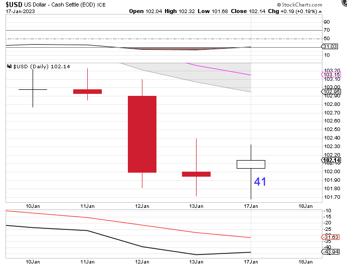 Tuesday was day 41, that places the dollar deep in its timing band for a DCL.