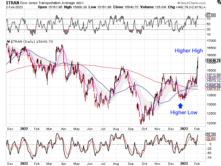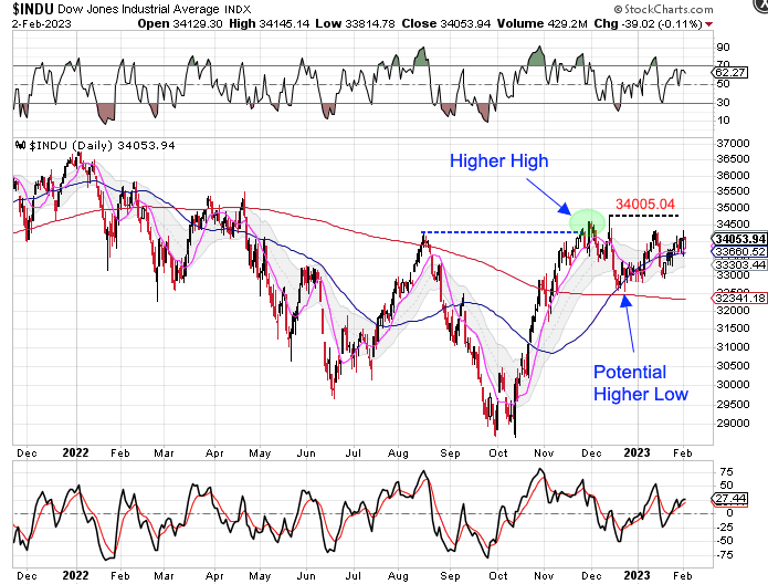 The Dow already forming a higher high in January and is working on forming consecutive higher highs.