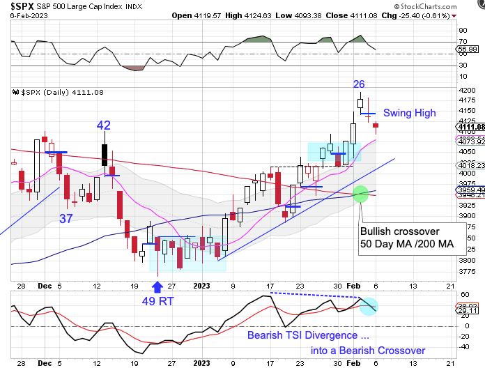 Stocks formed a swing high on Friday then delivered bearish follow through on Monday.