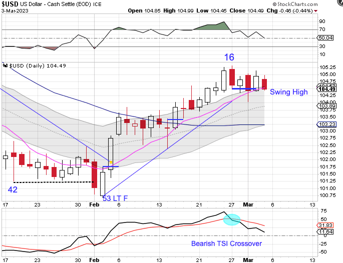 The dollar formed a bearish candle on Monday and a swing high on Tuesday.