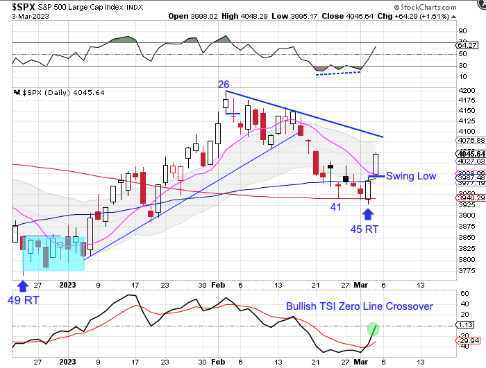 Stocks delivered bullish follow through on Friday by forming a swing low and closing back above the converging 50 day MA and 10 day MA to signal the new daily cycle. Stocks should go on to turn the 10 day MA higher and break above the declining trend line as they rally out of their DCL.