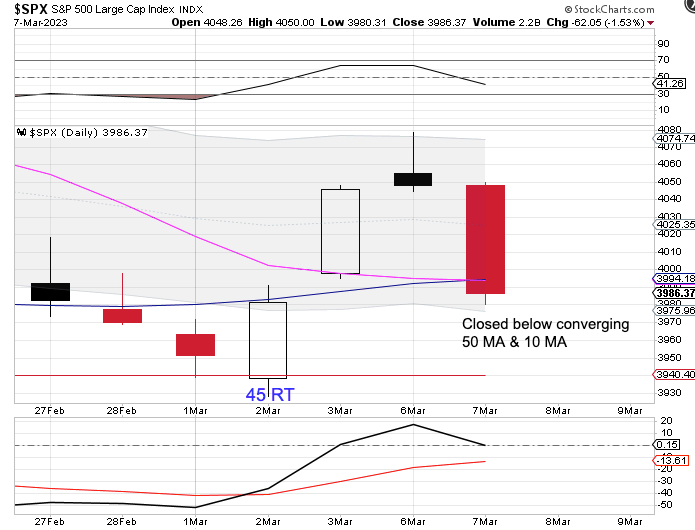 Stocks closed below the converging 50 day MA and 10 day MA on Tuesday.
