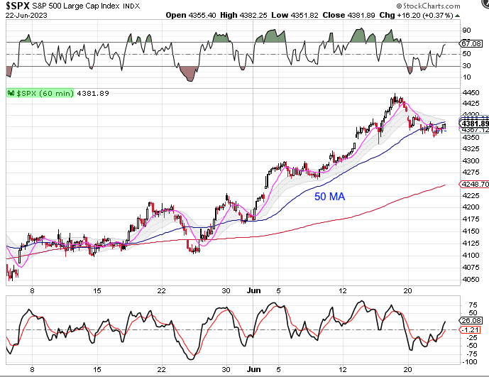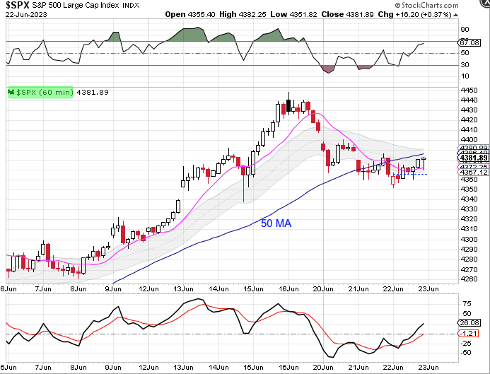 So I decided to look at the 60 minute chart and we can see that stocks closed below the 50 day MA, like they did back in May. But once they recovered the 50 MA on the 60 min chart — it was off to the races.
