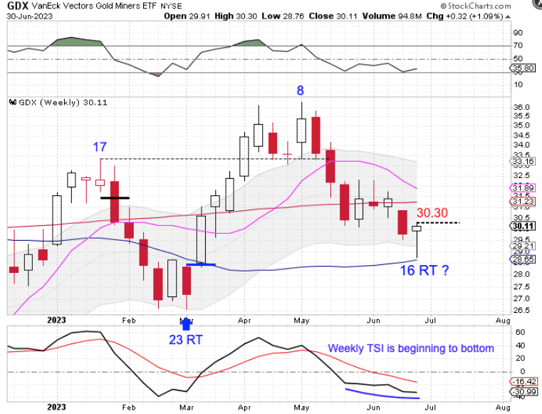 5) Frequent updates of my proprietary Buy/Sell Indicators for GDX & FAS.