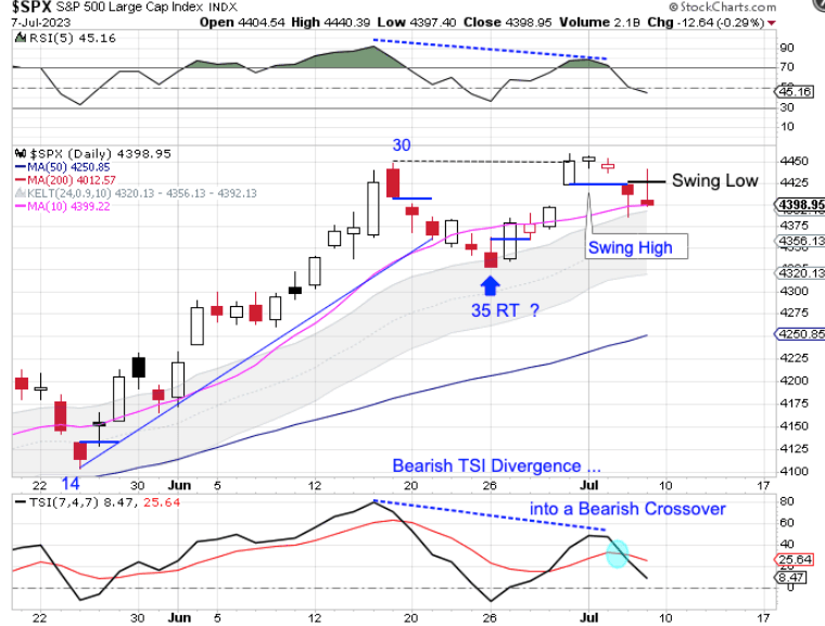 The status of the daily cycle is not clear since the 10 day MA did not turn lower as stocks printed the day 35 low.