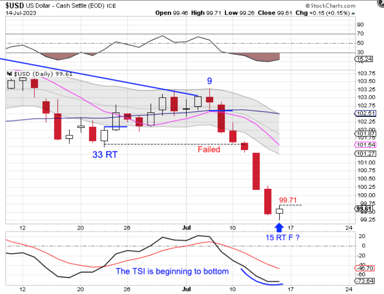 The dollar broke below the June daily cycle low on Tuesday then delivered bearish follow through on Wednesday and Thursday.