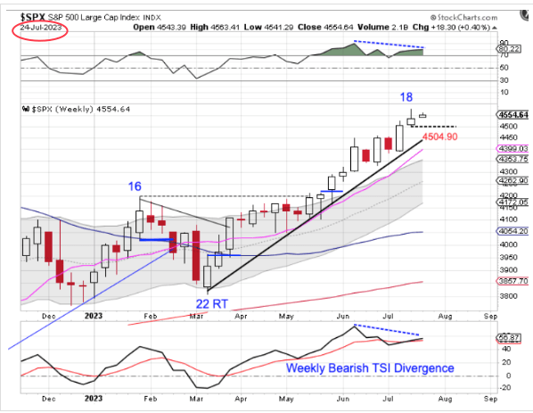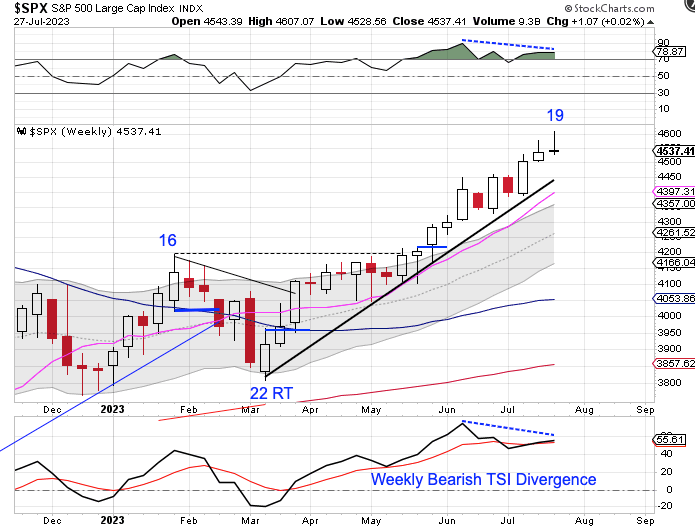 On Monday we looked at the big picture for stocks and the dollar. Tonight we will update those charts. Below was the weekly chart for stocks that was posted on the 24th.