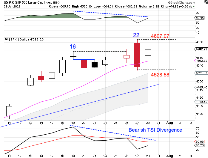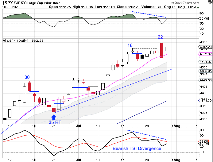 Any bearish follow through would signal the daily cycle decline, however stocks rallied on Friday.