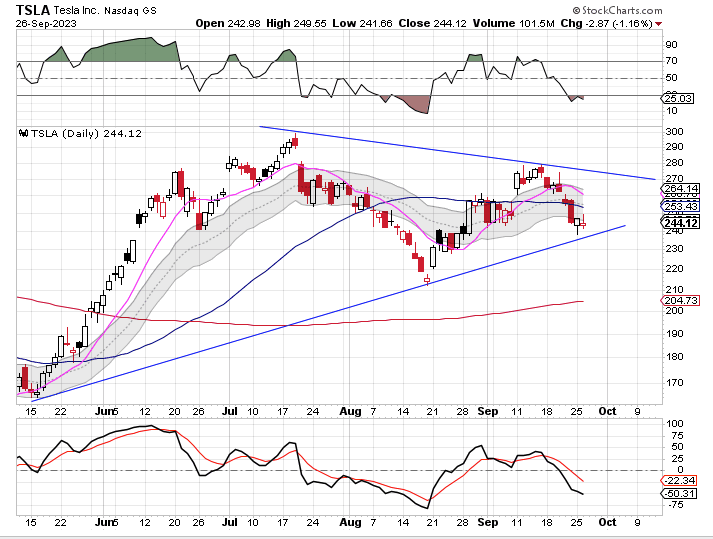 The resolution of these triangles usually result in a trending move. At this point we do not know if it will be a bullish or bearish trending move. What we do know, from the Weekend Report, is that stocks are in their timing band for both a daily cycle low and an intermediate cycle low. So if this consolidation resolves when stocks print their pending DCL and ICL, this could send Tesla on a bullish trending move.