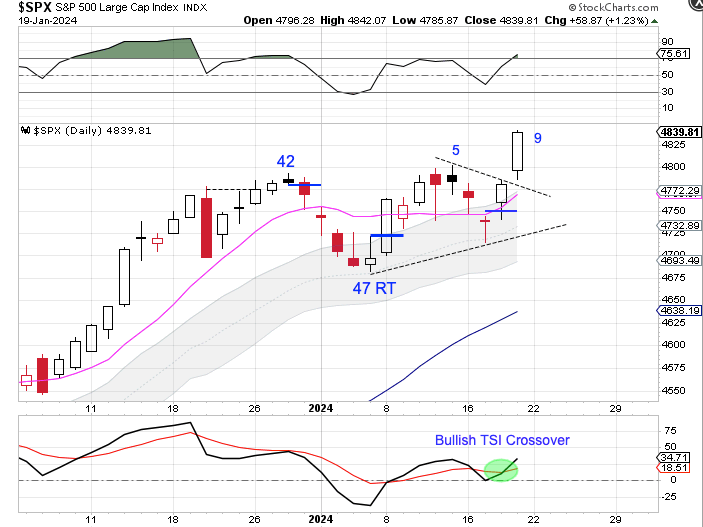Stocks broke bullishly out of consolidation on Friday. Stocks currently are in a daily uptrend. Breaking bullishly out of consolidation indicates a continuation of the daily uptrend and signals a cycle band buy signal.