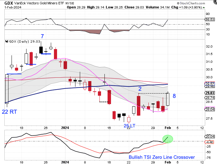 However, the Miners delivered a bullish surprise on Thursday by breaking out to a new daily cycle high. A close above the converging 200 day MA and 50 day MA could be a game changer for the Miners — which I plan to cover in the Weekend Report.